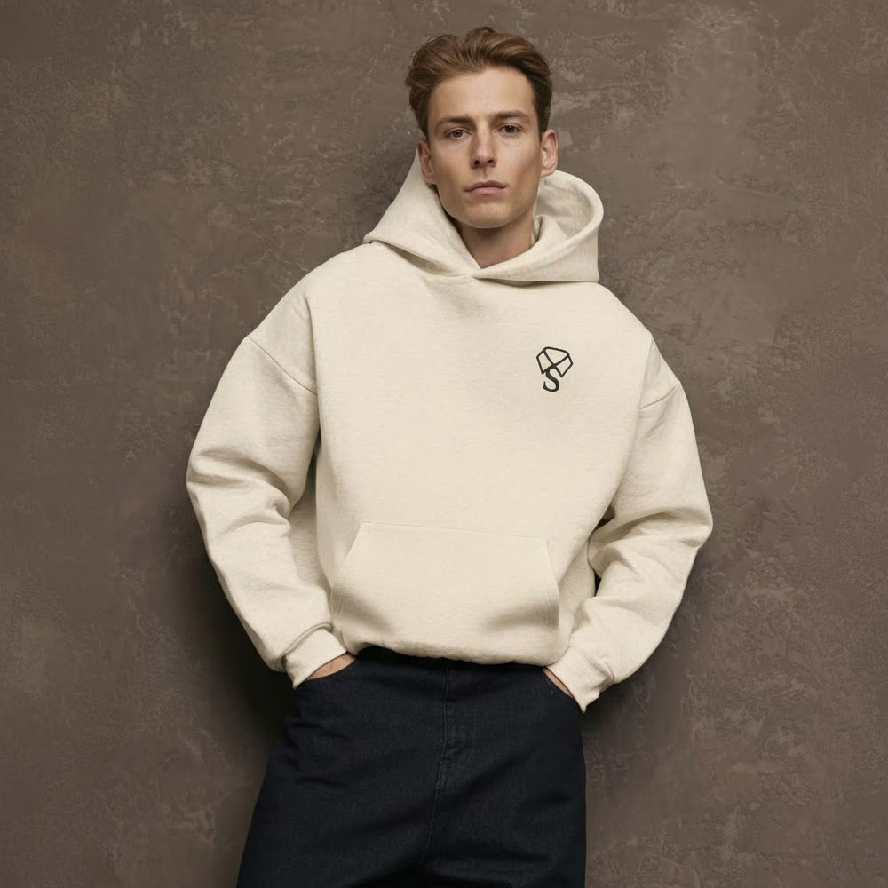 Stay cozy and stylish with this classic Cream White hoodie. Made from soft, high-quality fabric, it features a comfortable fit, a front kangaroo pocket, and an adjustable drawstring hood. The minimalist logo on the chest adds a subtle, modern touch, making it perfect for casual wear or layering in cooler weather.