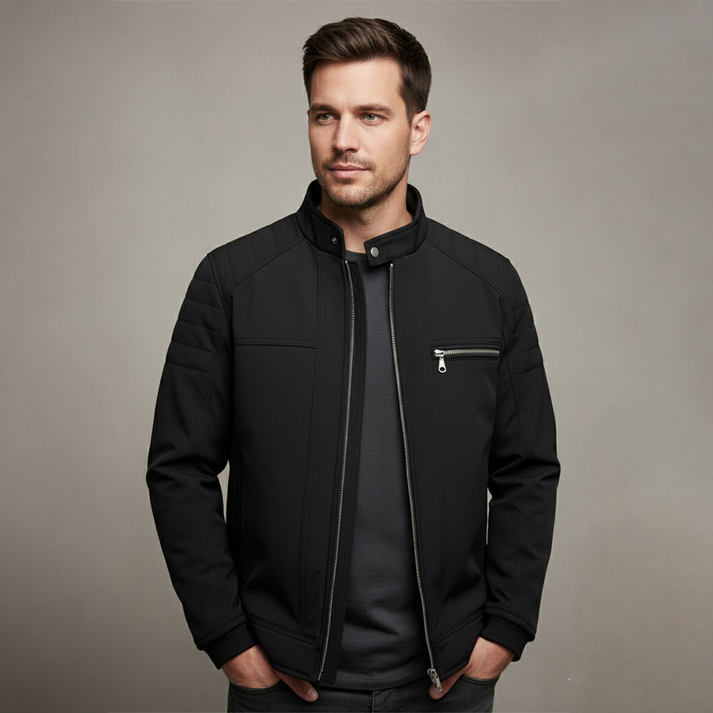 Material: Softshell fabric, which is typically windproof and water-resistant.